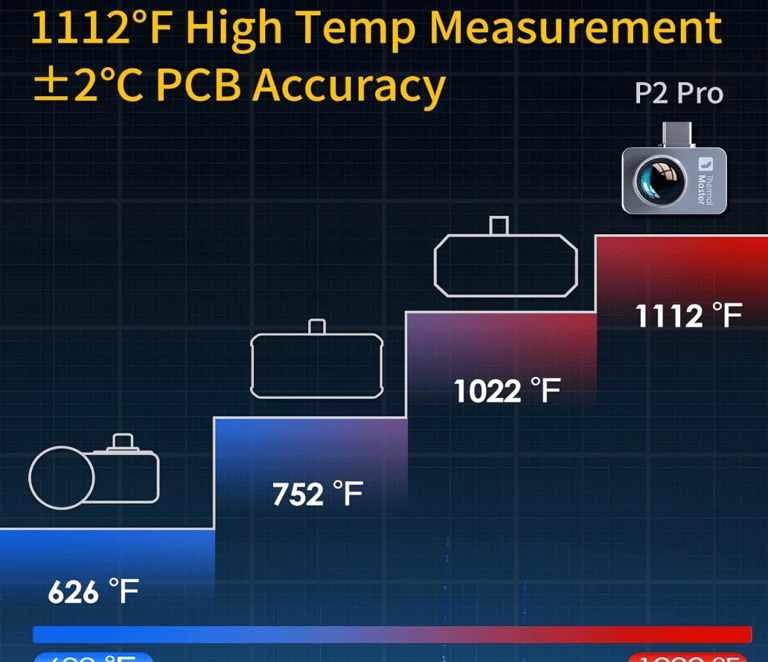 The P2 Pro delivers true 512×384 infrared resolution and includes a macro lens for pinpoint close-up imaging. Whether you’re analyzing circuit boards, inspecting HVAC systems, or checking pipelines, the P2 Pro reveals hidden heat signatures others miss.